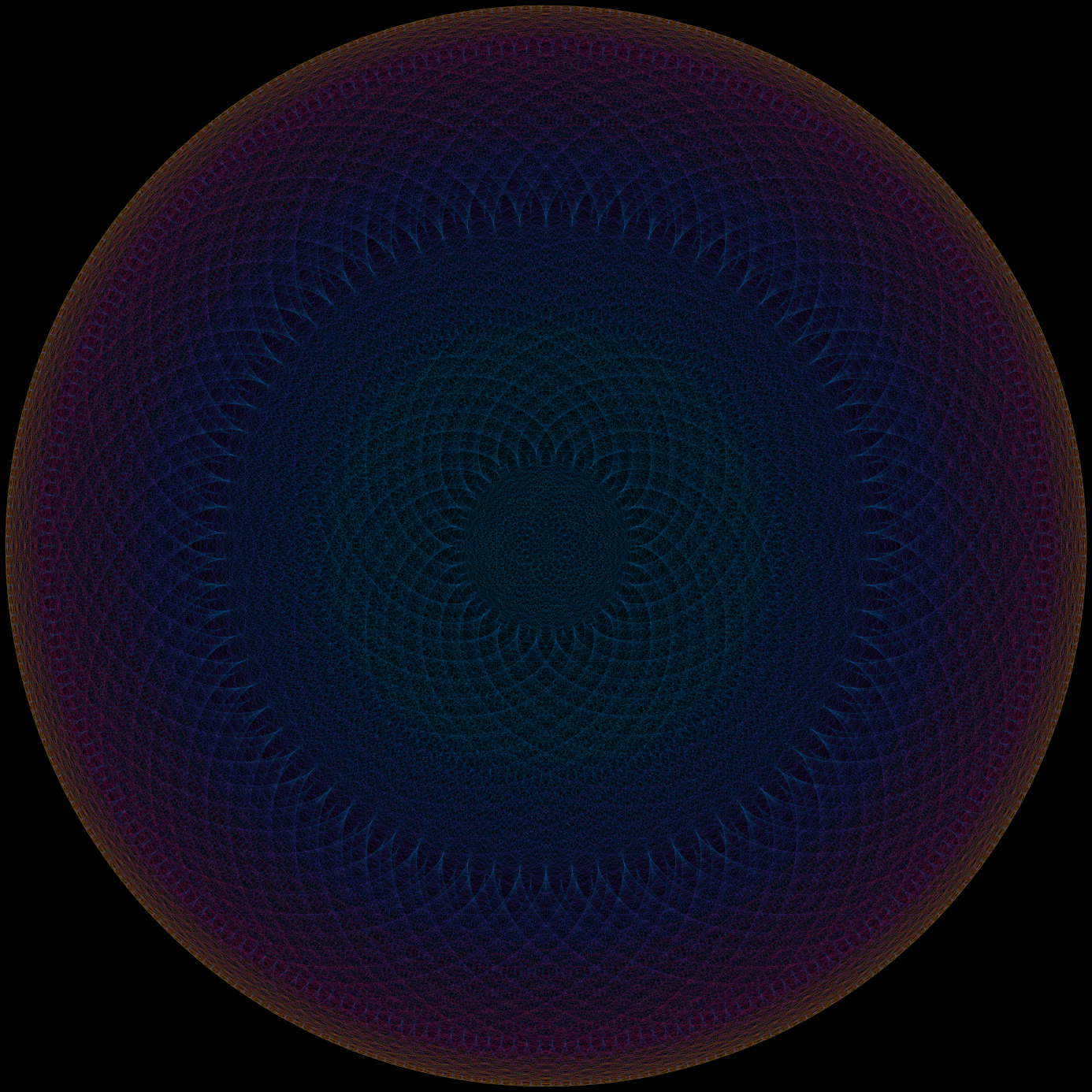 I thought Mathologer’s video about Tesla’s 3-6-9 and vortex math was cool. As a spoiler for the question is this the key to the universe, no. No, this is not. I didn’t know it needed a key. Was it locked? I had to make one of these a 240-7417 diagram since, when I saw that one in the Mathologer video, that was when I knew I had to write Python code to make a lot of these. There is also a GitHub repository for the code.