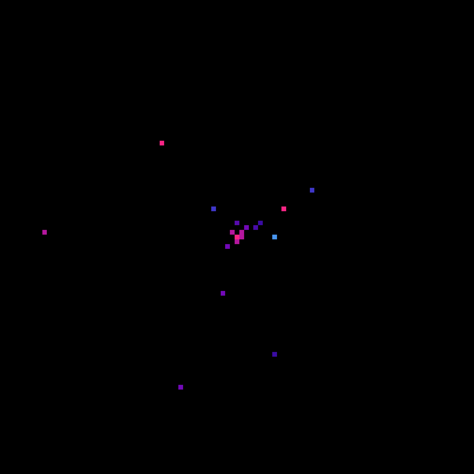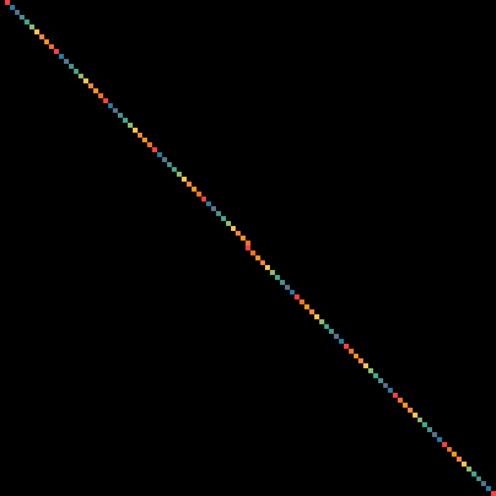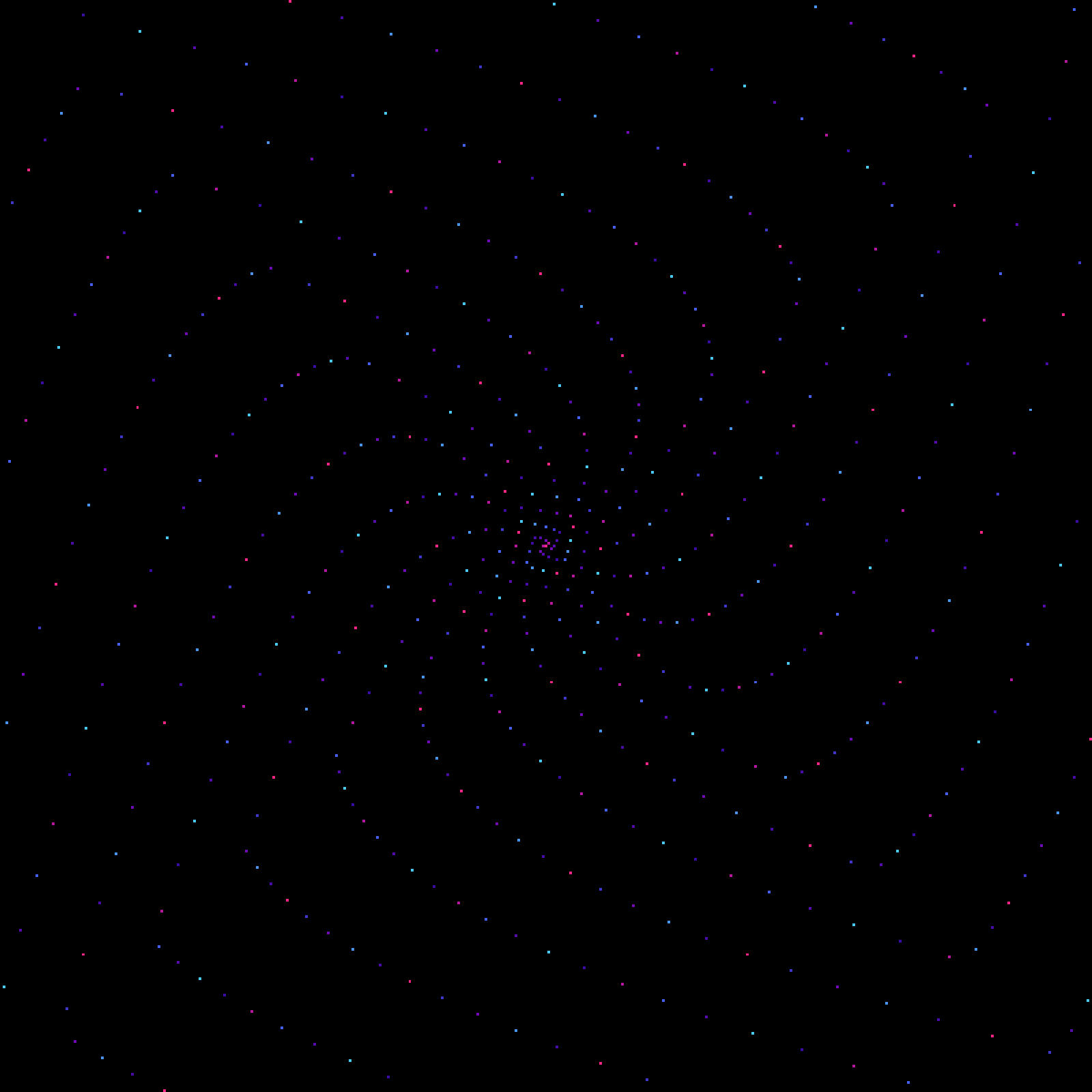 I knew I had to make Ulam spirals when I saw Numberphile’s video about them. I wrote Python code to generate these where colors alternate with each concentric square. I made a GitHub repository for the code. A visit to a page of Matthew Conroy gave me the notion to map sequences other than primes too. Factorials, the Fibonacci sequence, and Mersenne primes make for sparse Ulam spirals, but I like them for that fact that they show which sequences are spread far out. For each sequence, there are four images for the numbers 1–10,201, 1–160,801, 1–361,201, and 1–1,002,001.